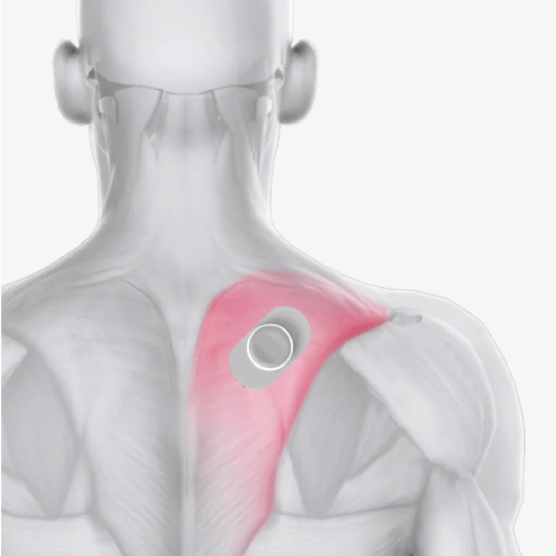 Fäst enheten direkt på huden där du upplever smärta eller spänningar, till exempel ländrygg, höft, axel eller ben.