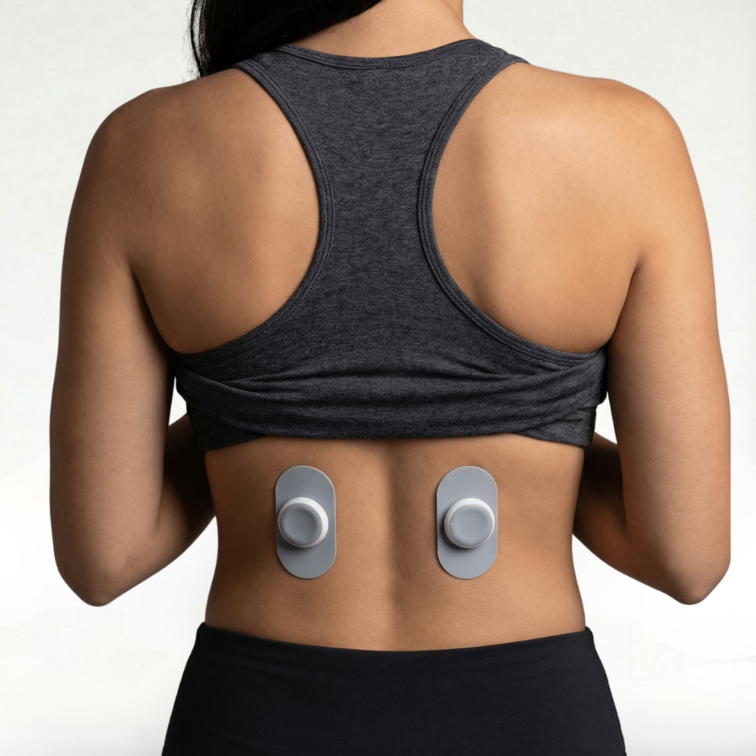 Våra självhäftande elektroder anpassar sig efter din kropp, ansluts magnetiskt till enheten och kan användas upp till 30 gånger.