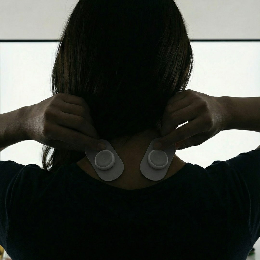 Placera elektroderna runt nacke, axlar eller ländrygg, starta enheten och fortsätt jobba – klart.