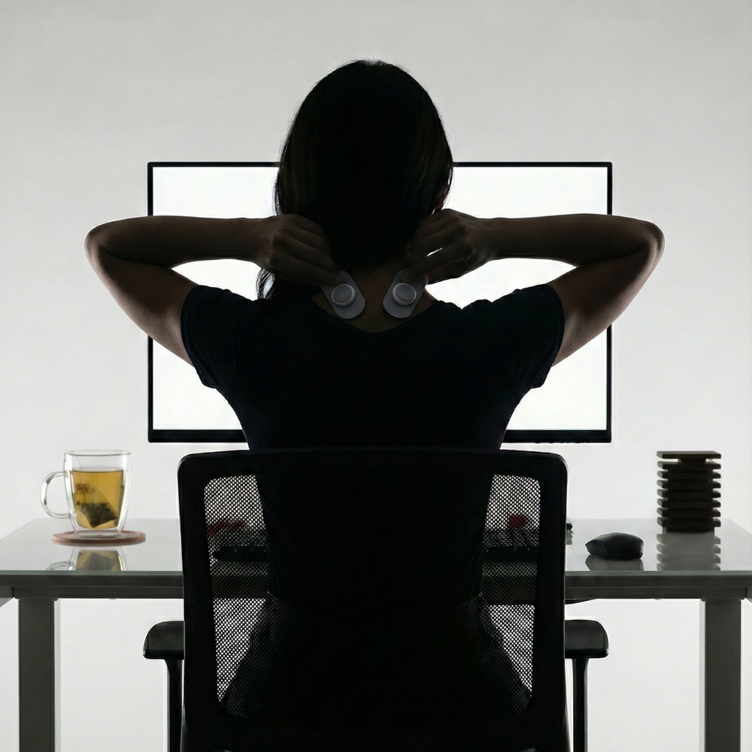 Ja. Neurowave Go används ofta för stelhet och obehag i nacke och axlar som uppstår vid stillasittande arbete och lång skärmtid.